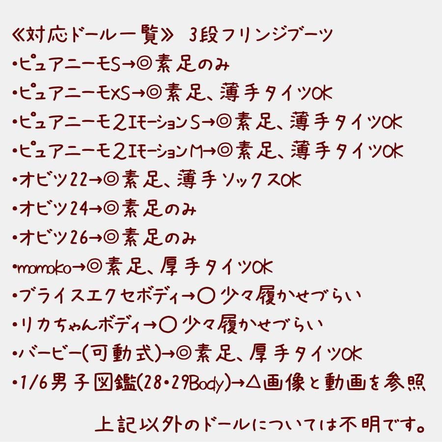 履くことのできるドールについては「3段フリンジブーツ」と同じです。